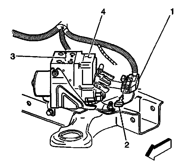 8. Remove the EBCM electrical connector (1) from the EBCM (4).