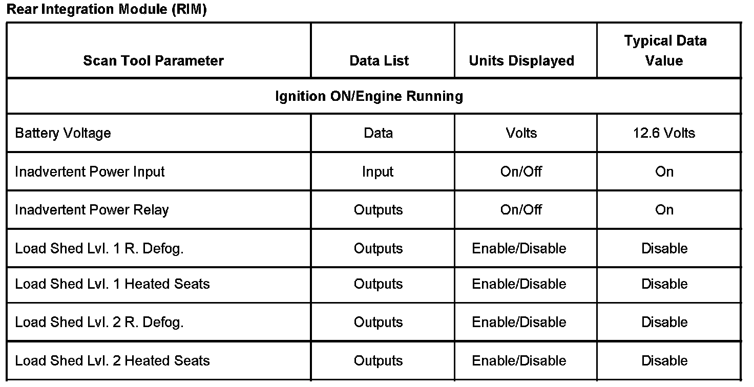 Scan Tool Data List - Rear Integration Module (RIM)