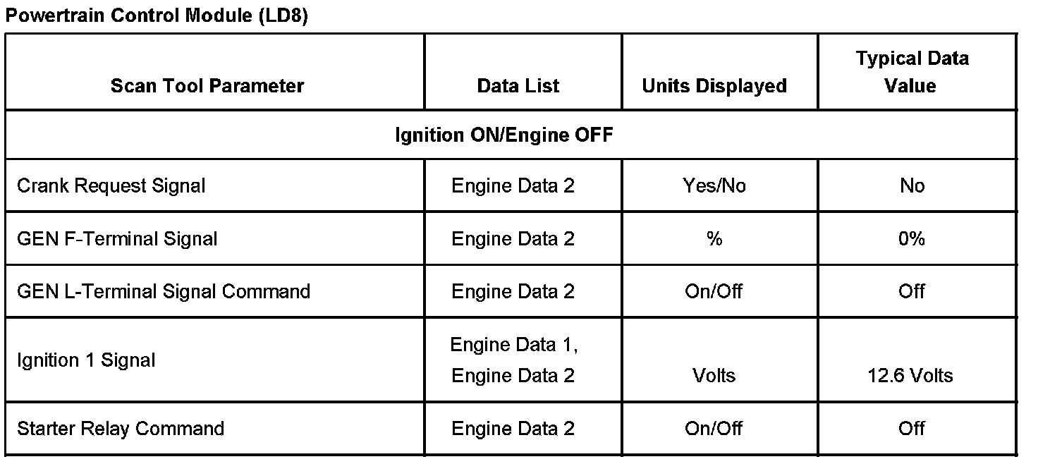Scan Tool Data List - Powertrain Control Module (PCM)