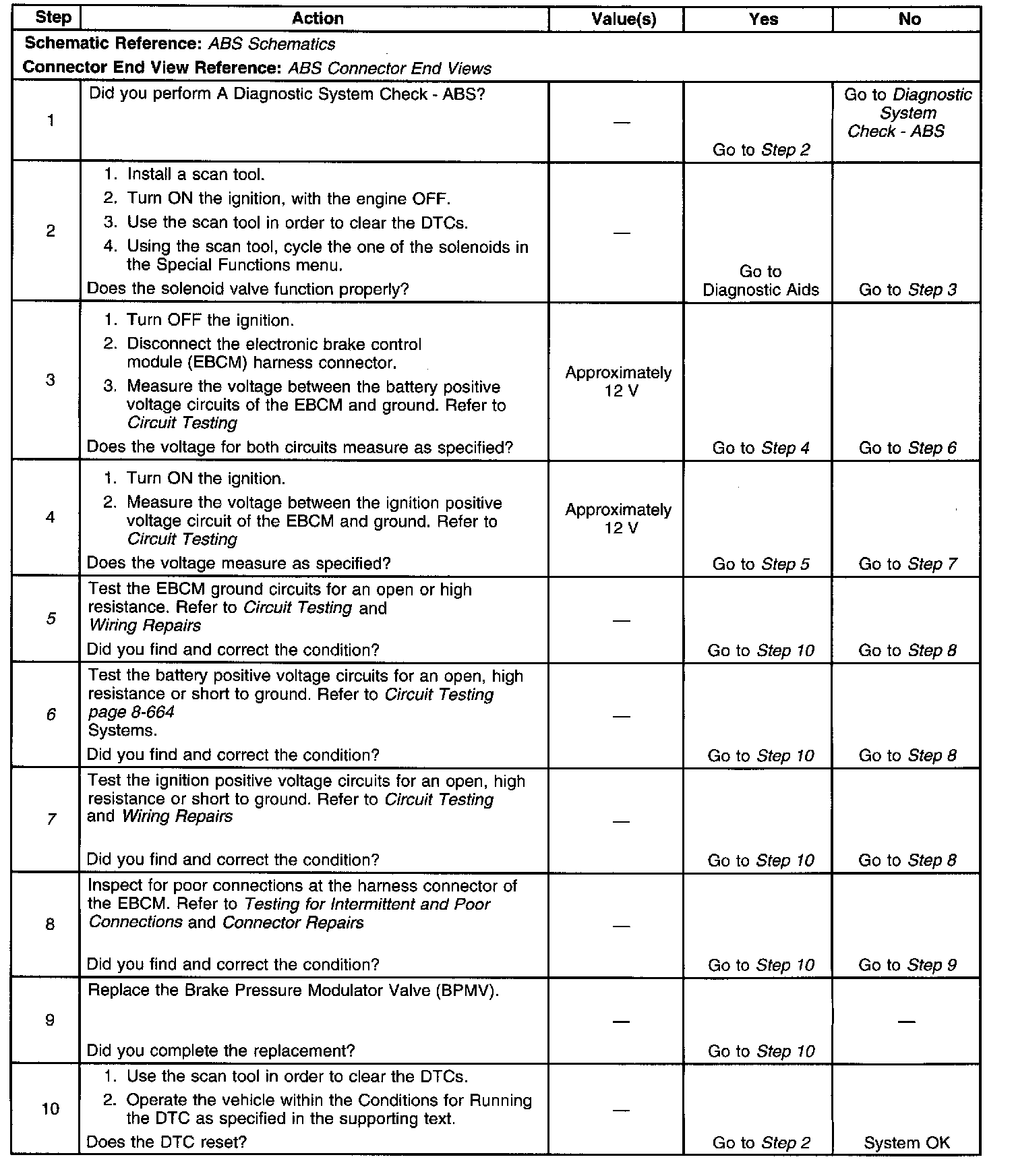 - valve relay voltage is 12 V when the EBCM is not requesting it to be.