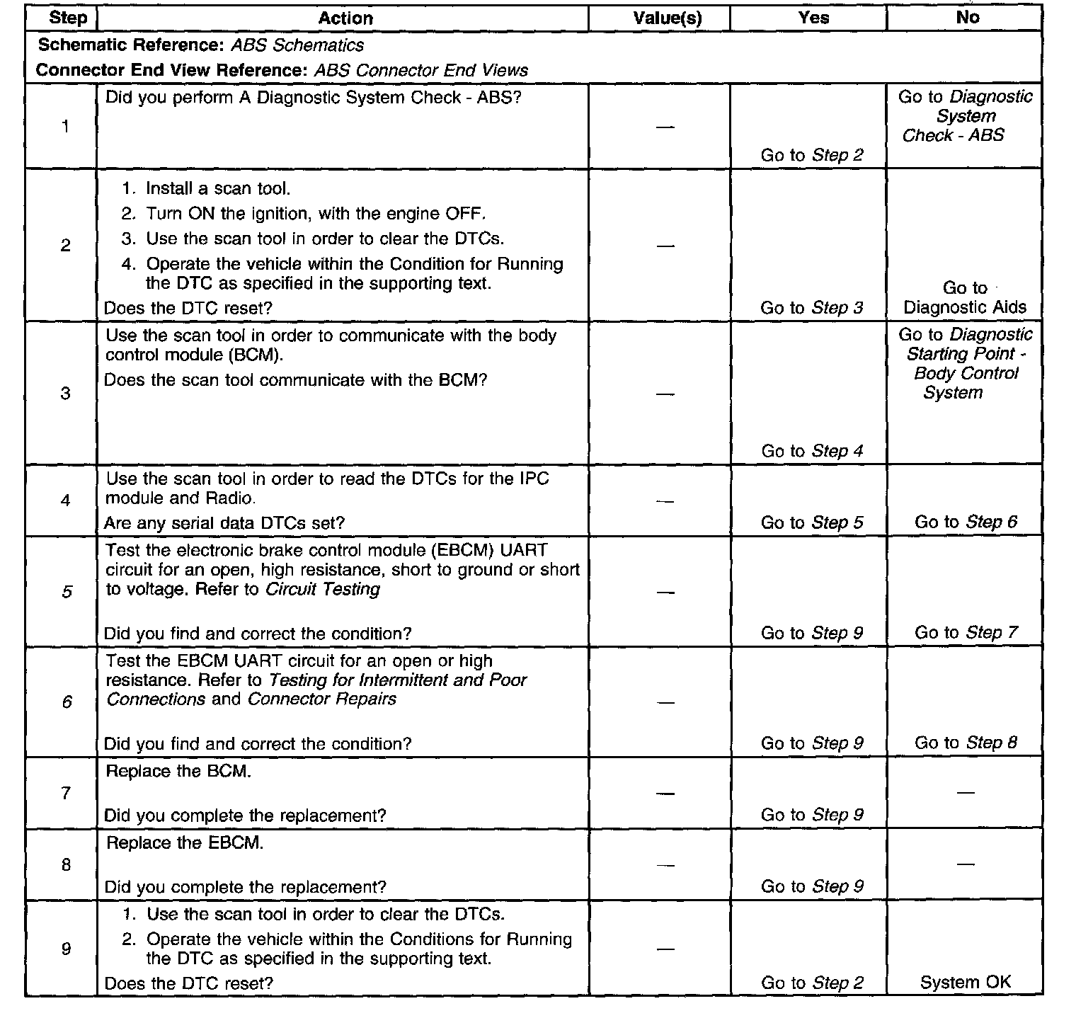 5. This step tests the UART SEC circuit of the EBCM for an open, high resistance, short to ground or short to voltage.