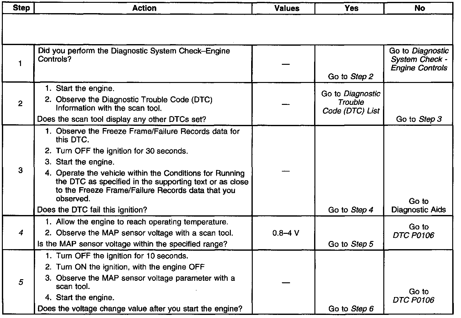 4. This step will determine if the MAP sensor voltage is within the proper range at idle.