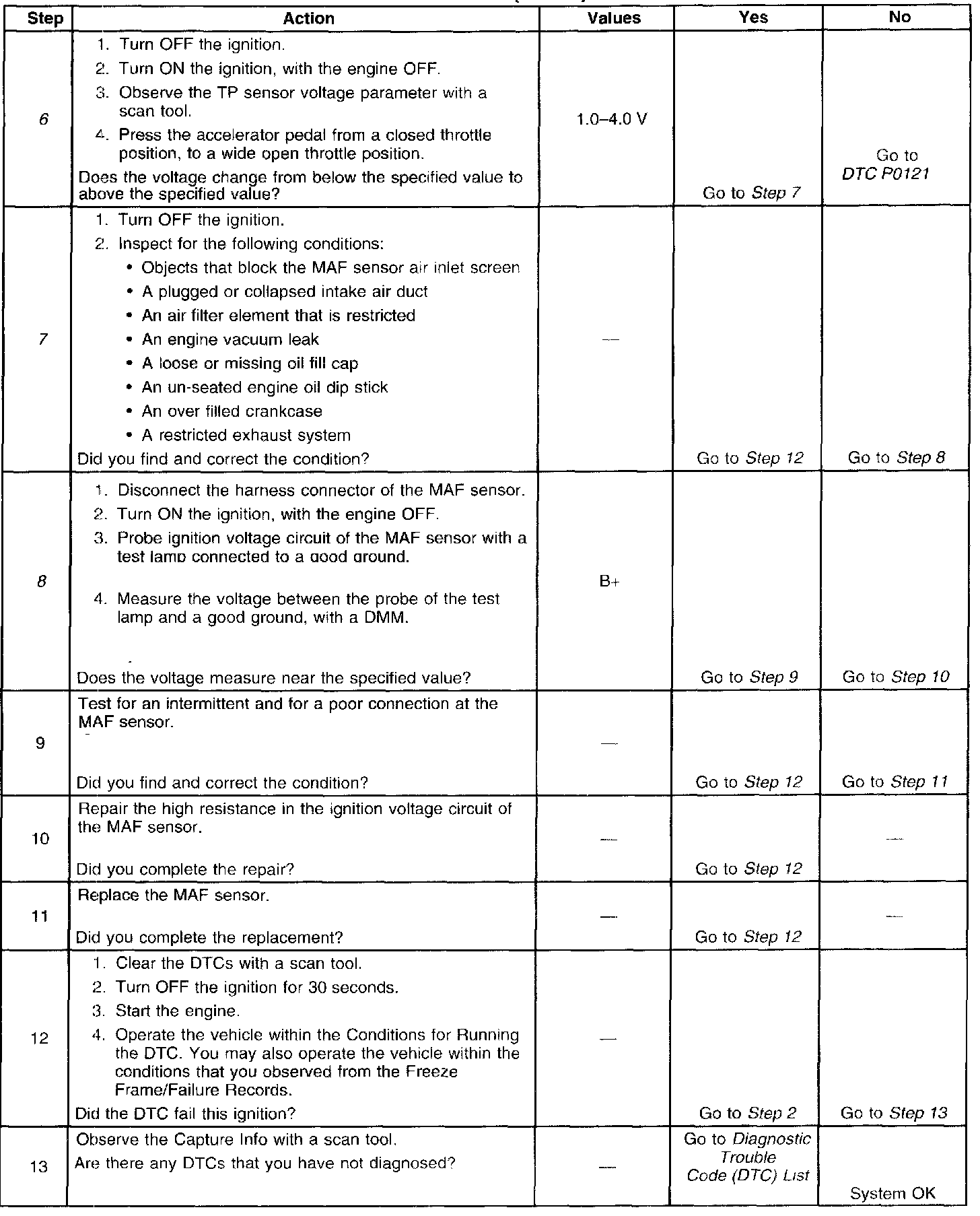 DTC P101 Steps 6-13: