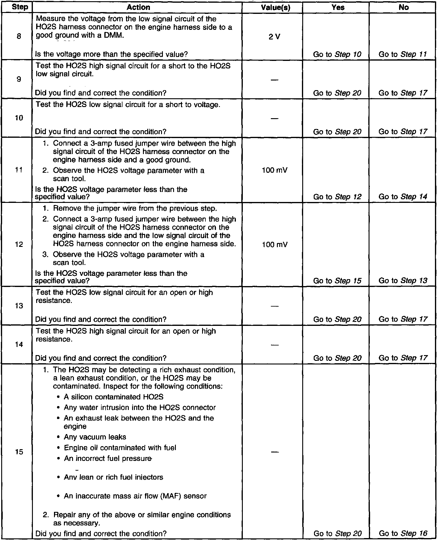 - The PCM detects that the HO2S bank 1 sensor 2 or HO2S bank 2 sensor 2 is more than 350 mV for25.4 seconds.
