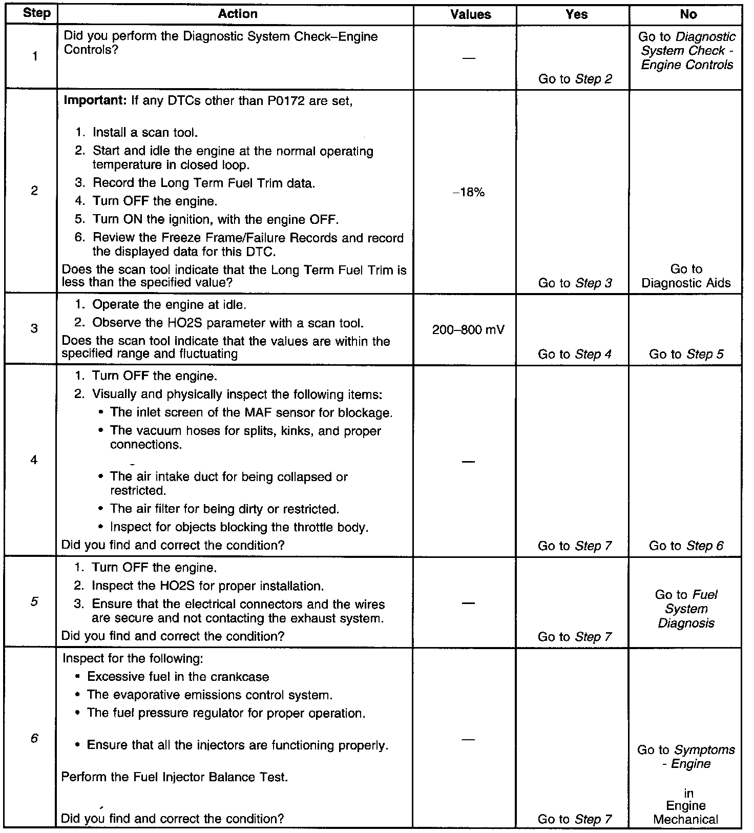 DTC P0172 or P1075 Steps 1-6: