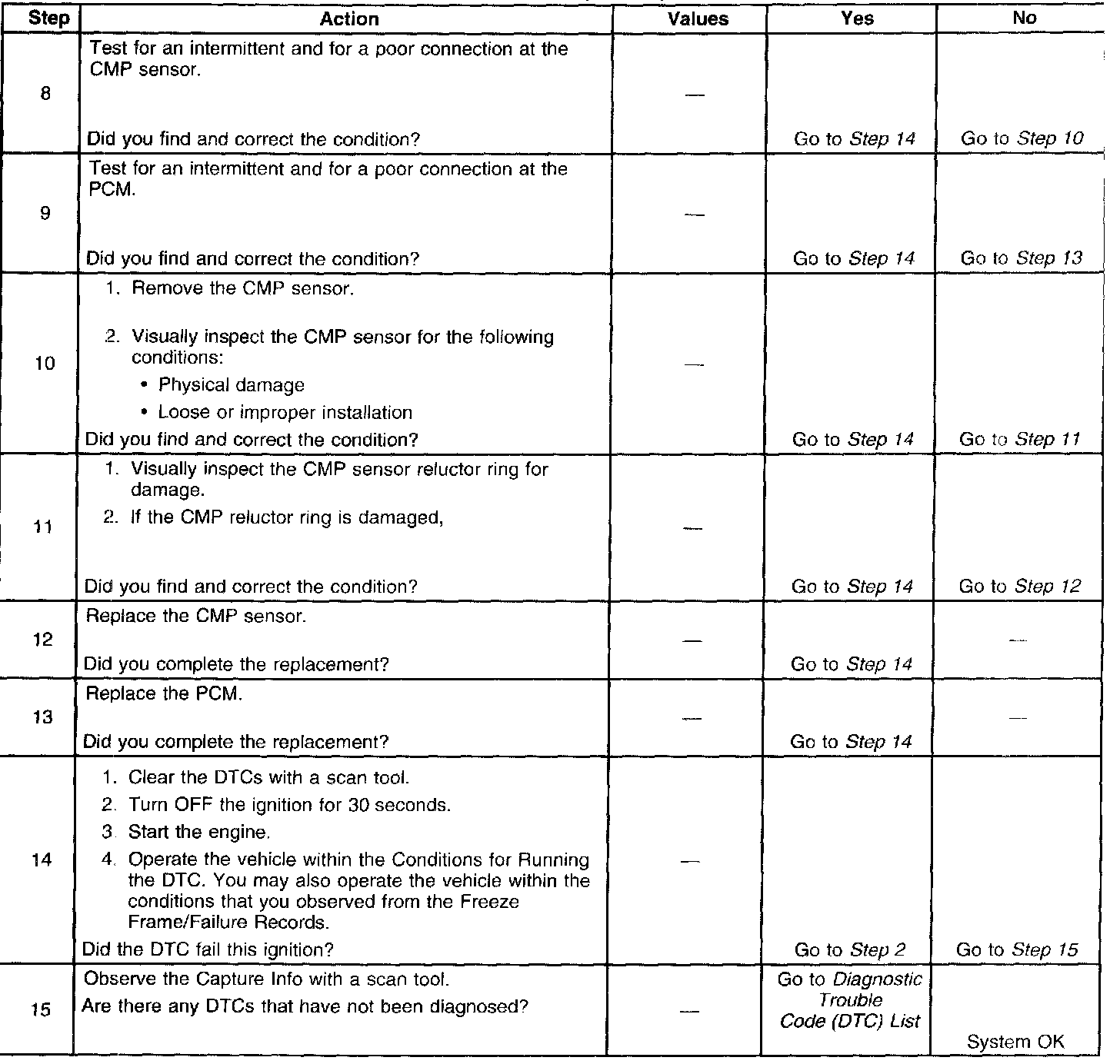This diagnostic procedure supports the following DTC. DTC P0342 Camshaft Position (CMP) Sensor Circuit Low Frequency