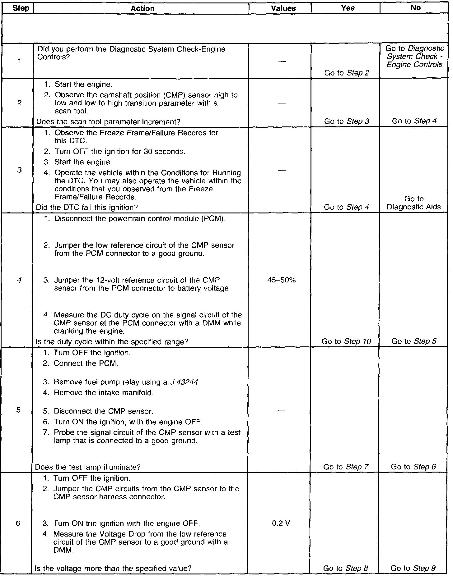 4. This step tests the CMP sensor and circuits from the CMP sensor to the PCM. If there is not duty cycle displayed or if the duty cycle is not within range there is a problem with the sensor or the circuits.