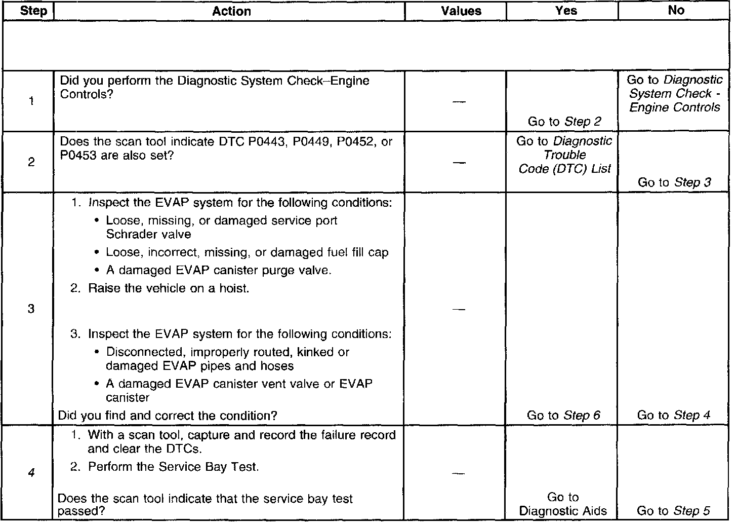 This diagnostic procedure supports the following DTC. DTC P0442 Evaporative Emissions (EVAP) Small Leak Detected