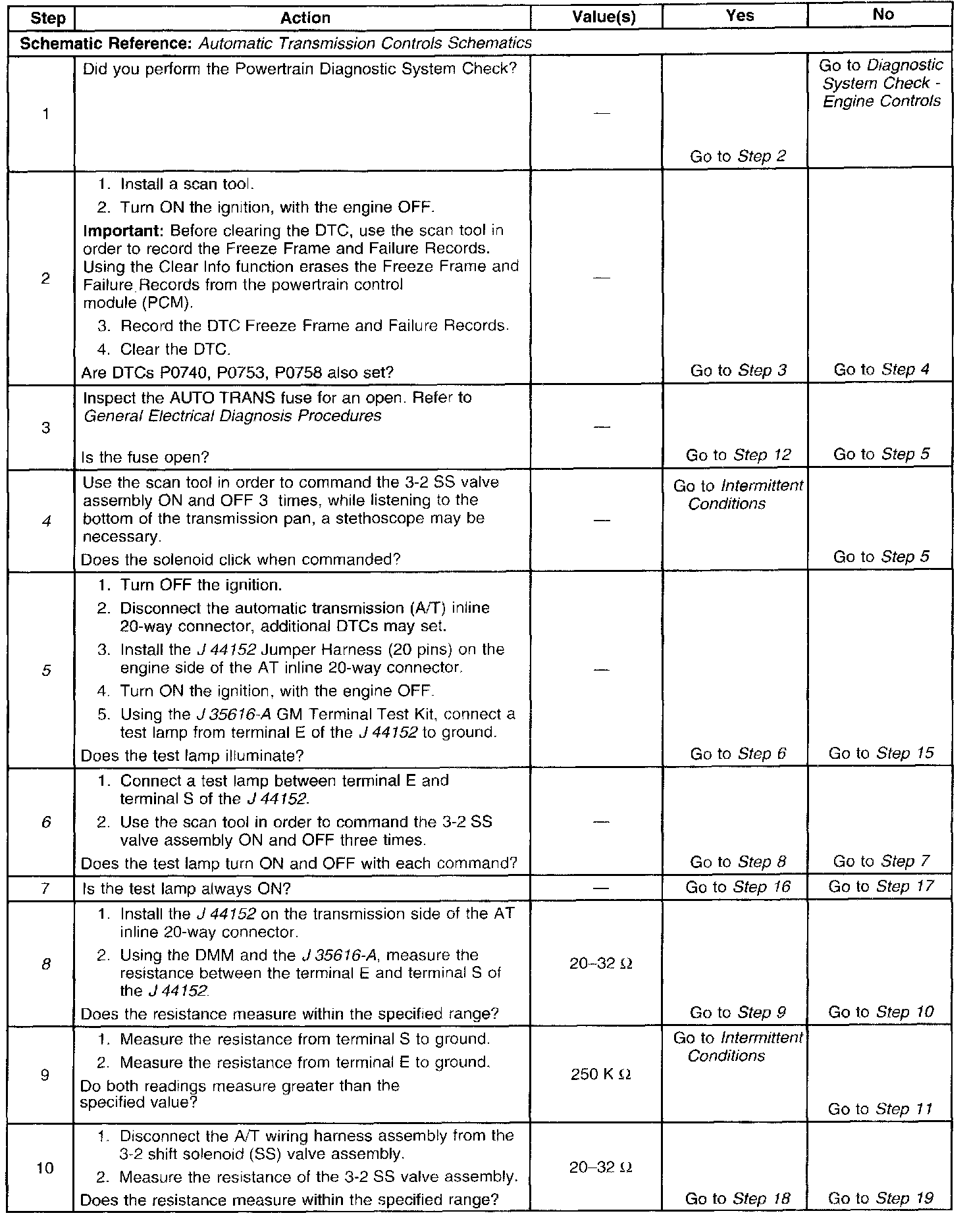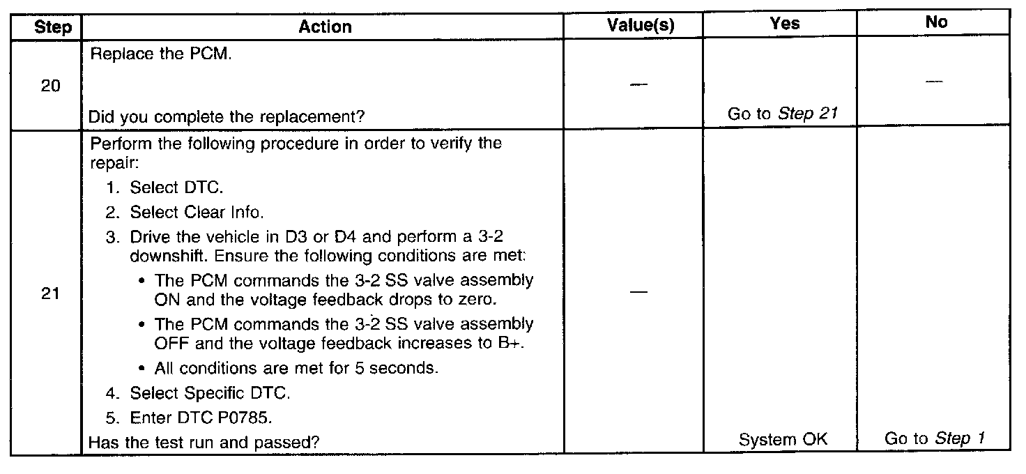 When the PCM detects a continuous open, short to ground or short to power in the 3-2 SS valve assembly circuit, then DTC P0785 sets. DTC P0785 is a type B DTC.