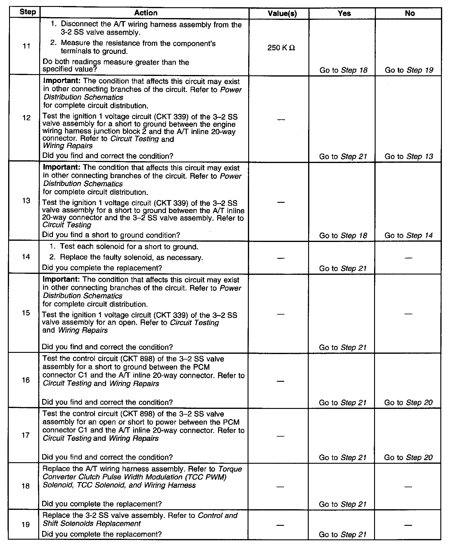 8. This step measures resistance of the automatic transmission (AT) wiring harness assembly and the 3-2 SS valve assembly.