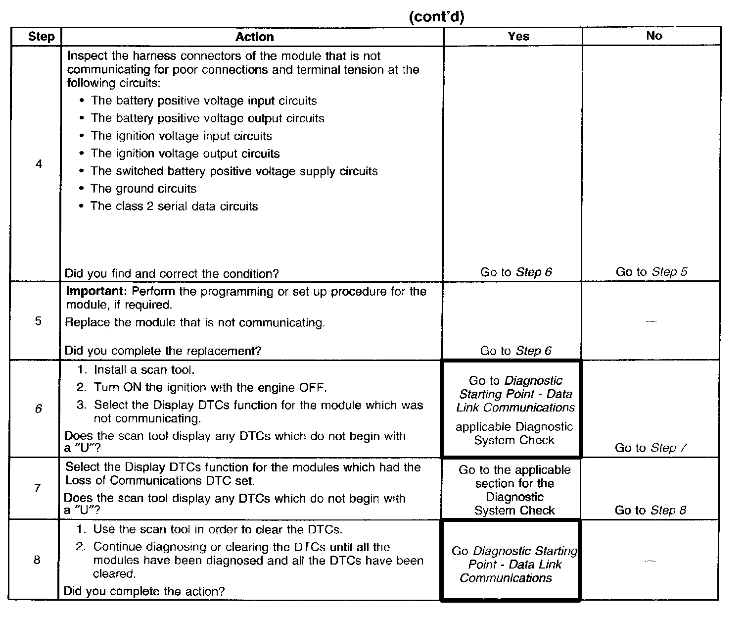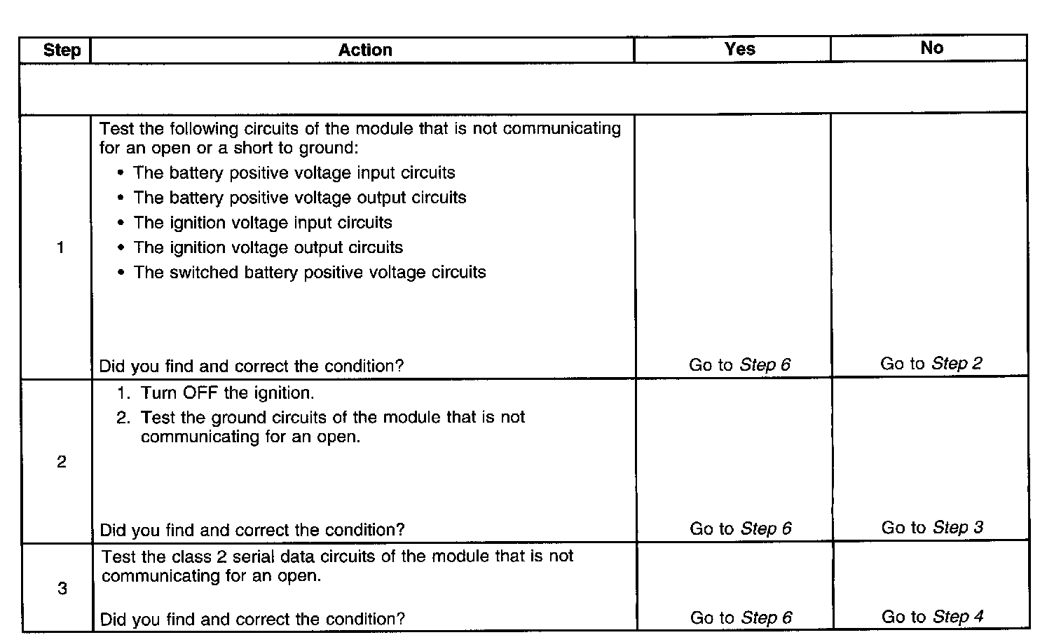 6. The module which was not communicating on the class 2 serial data circuit may have set Loss of Communication DTCs for those modules that it was monitoring.