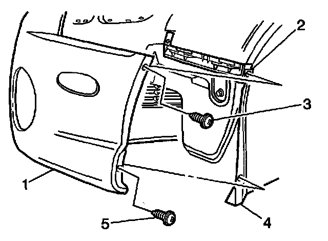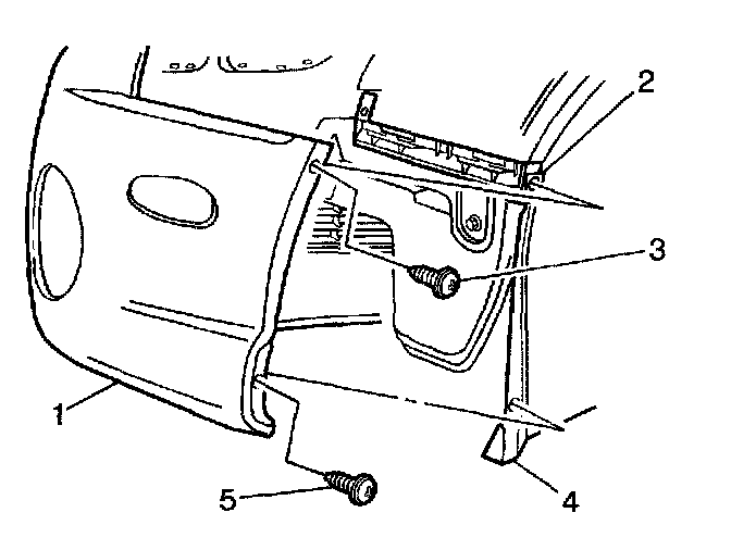 2. From each side of the fascia (1), remove the screw (5) that attaches the fascia (1) to the wheelhouse liner (4).