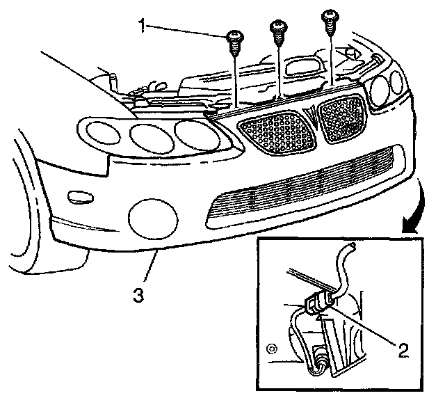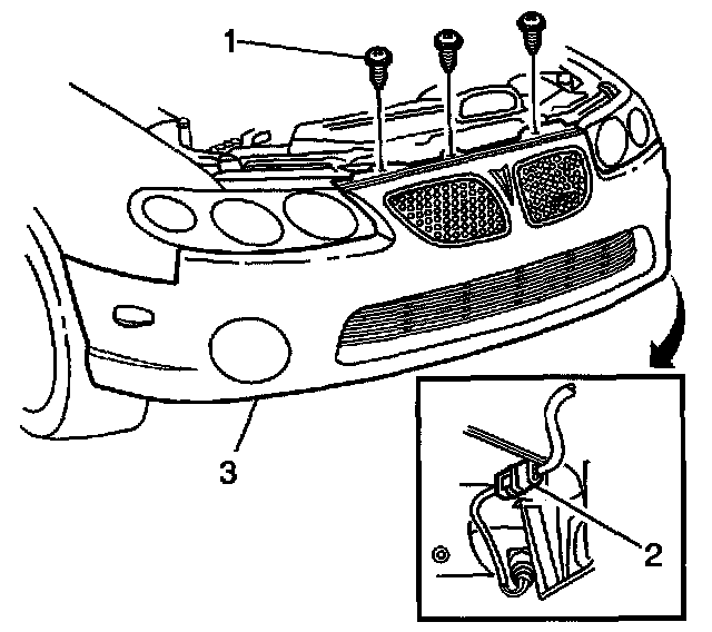 3. From each side of the fascia (1), remove the screw (3) that attaches the fascia (1) to the fascia support (2).