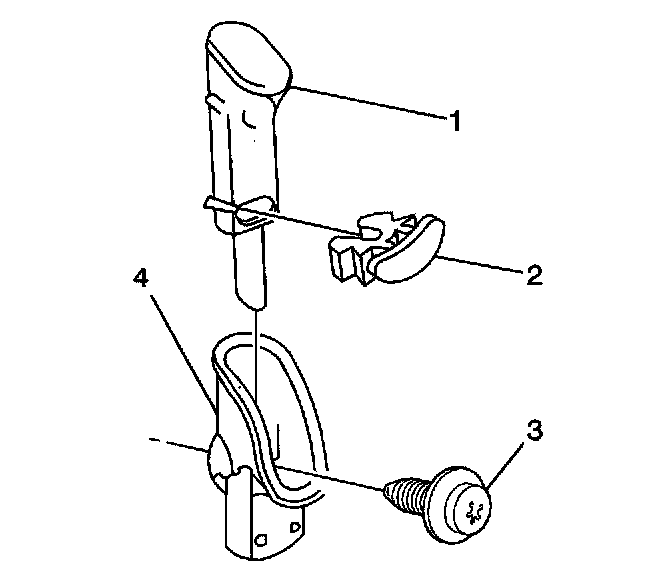 1. Install the door locking rod ferrule (4) to the door trim panel and secure with the screw (3).