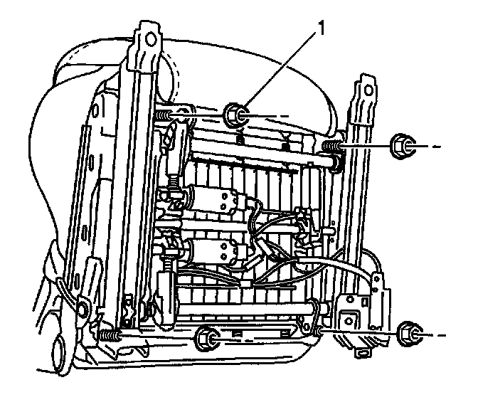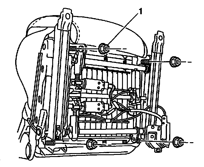 6. Remove four seat adjuster retaining nuts (1).