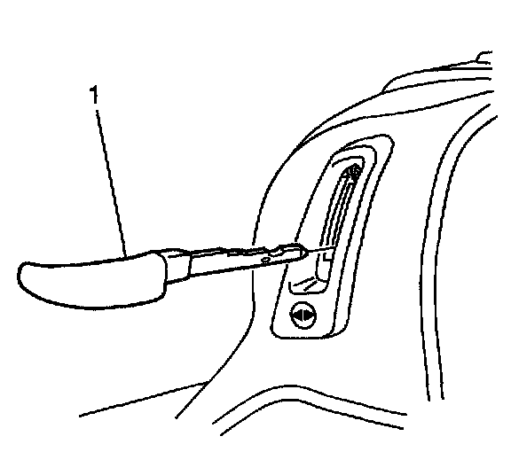 1. Remove the seat back latch to seat back frame retaining screw (1).