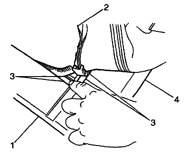 7. Lift the cover and pad assembly away from the seat frame then release the rear J-clip (3).