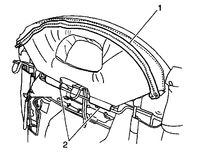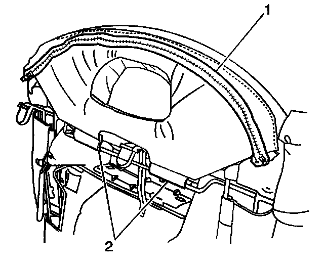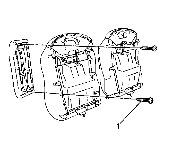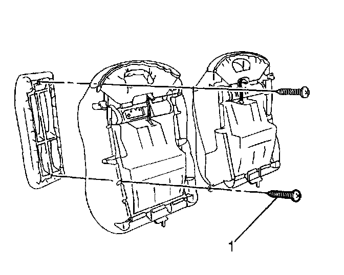 4. Remove 2 rear seat back center to rear seat back frame retaining screws (1).
