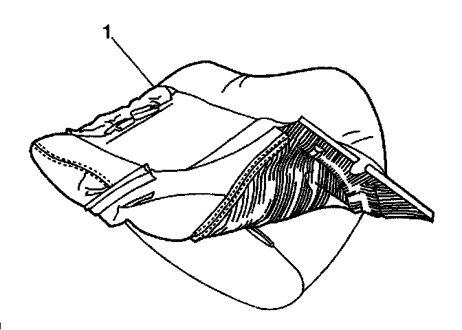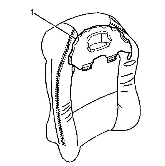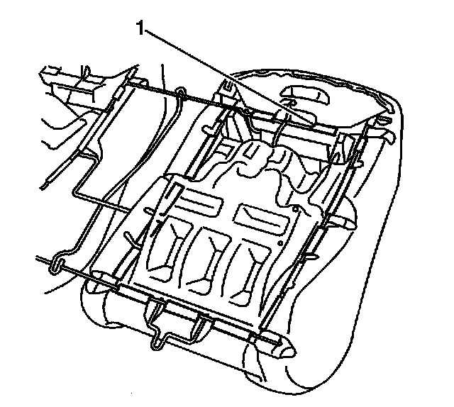 9. Pull the flap (1), completely through the opening in the rear seat back pad.