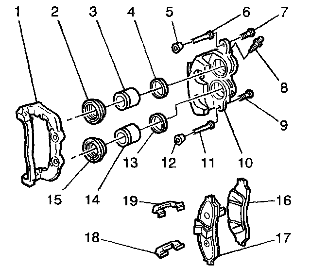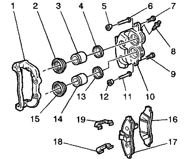 6. Separate the caliper housing (10) from the bracket (1).
