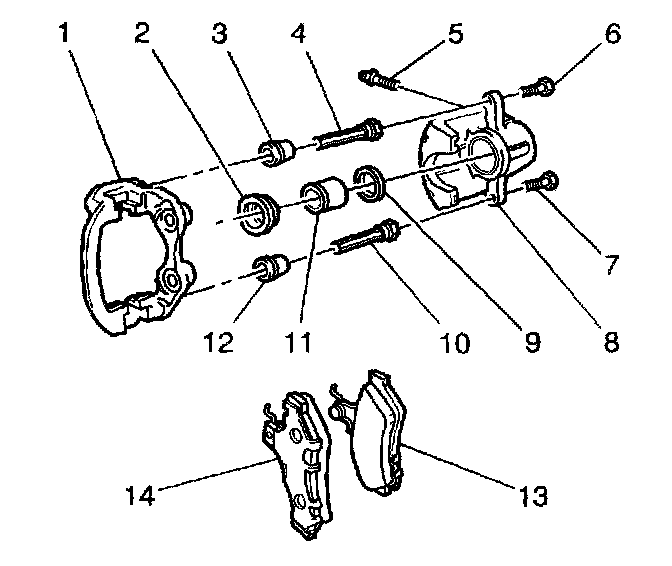 6. Separate the caliper housing (8) from the bracket (1).