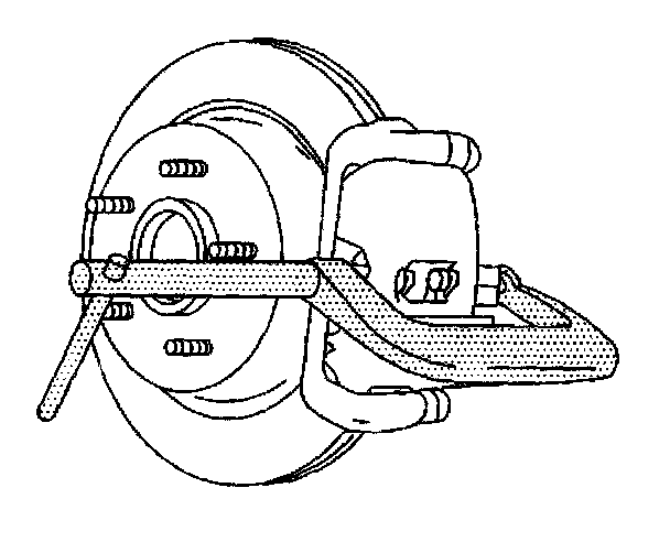 - Position 1 end of the clamp against the caliper body adjacent to the brake hose fitting