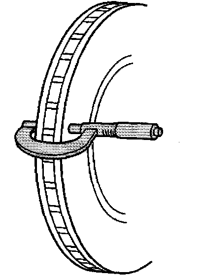 3. Use the J 26900-1, or the equivalent micrometer, in order to measure the thickness of the brake rotor. Measure the thickness of the rotor at 4 or more points equally spaced around the rotor. Position the J 26900- 1, or the equivalent, at the same distance from the outside edge of the rotor, in the brake pad lining contact area.