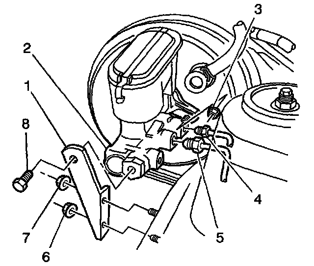 18. Remove the bolt (8) from the master cylinder bracket (1).