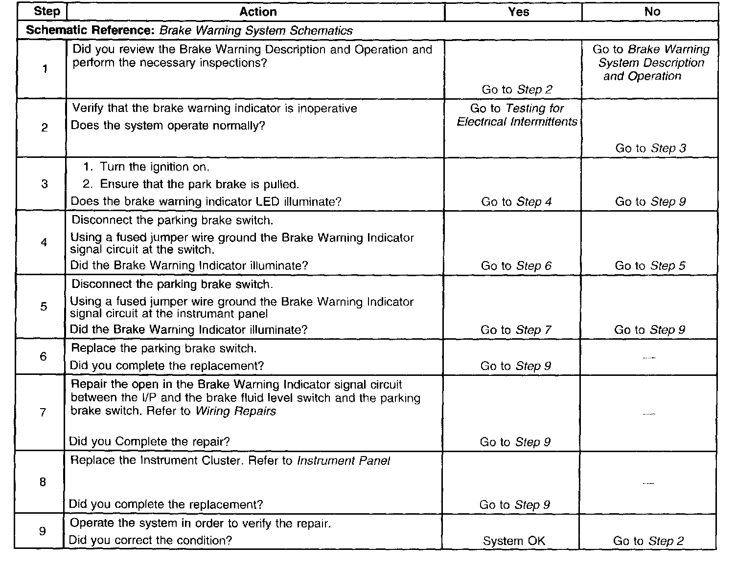 Brake Warning Indicator Inoperative