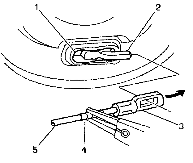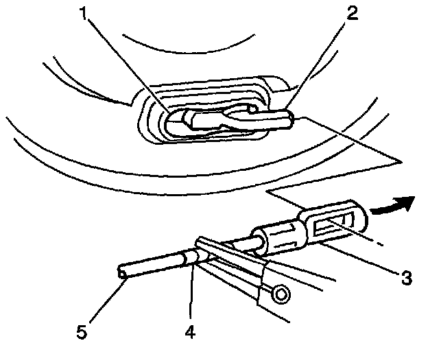 11. Using pliers on the wrapped portion of the cable, pull the cable rearward in order to release the clevis from the park brake actuating lever (2).