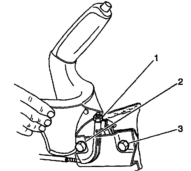 3. Install the park brake lever assembly and the 2 bolts (2, 3) to the vehicle.