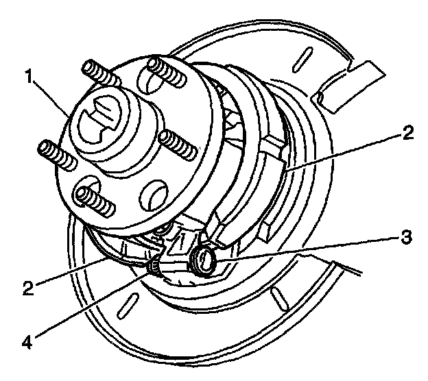 Park Brake Shoe Inspection1. Remove the park brake shoe (2). Refer to Park Brake Shoe Replacement.