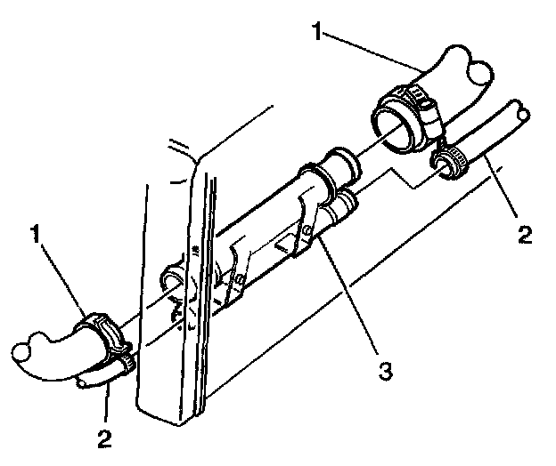 2. Loosen and remove the radiator inlet hoses (1) from the radiator inlet pipe.