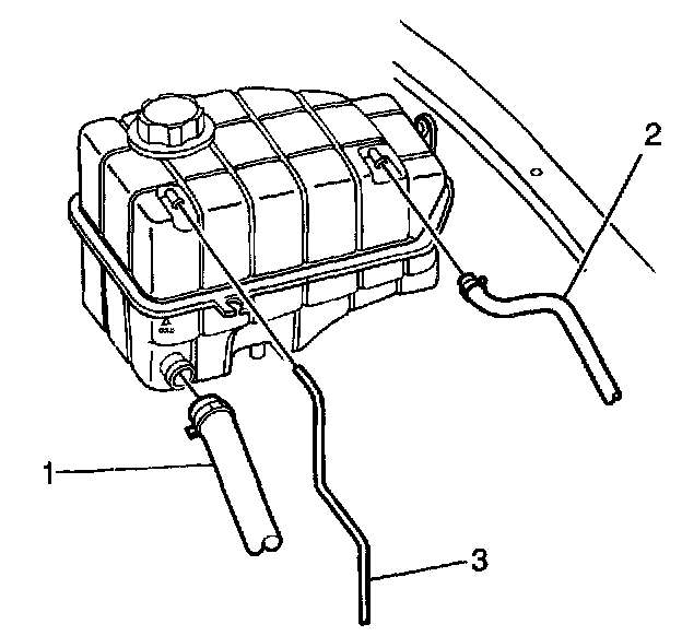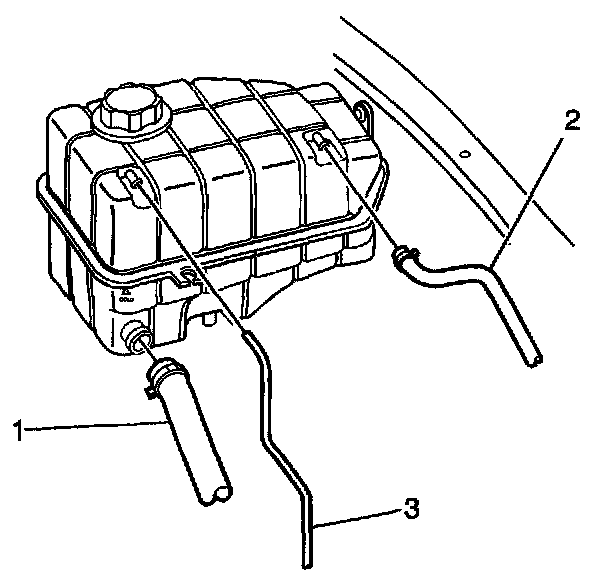 4. Disconnect the surge tank overflow hose (3).