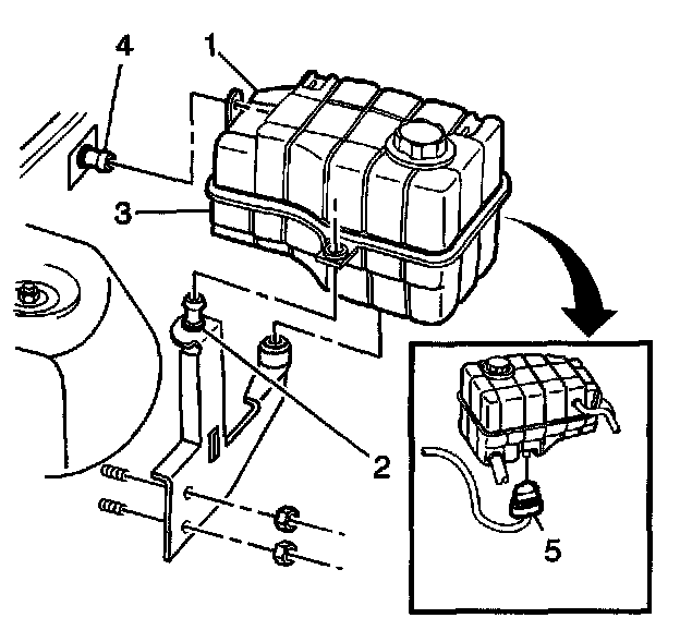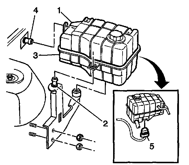 6. Connect the radiator hose to the surge tank inlet fitting (1).