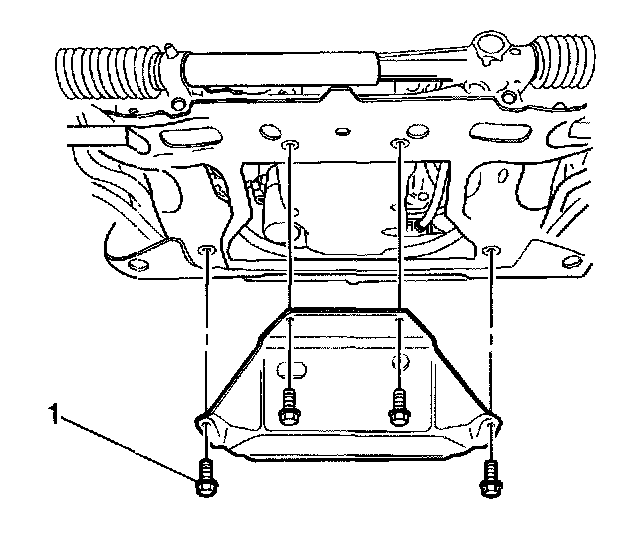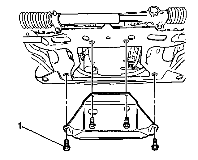 2. Remove four oil pan shield bolts (1), then the oil pan shield.