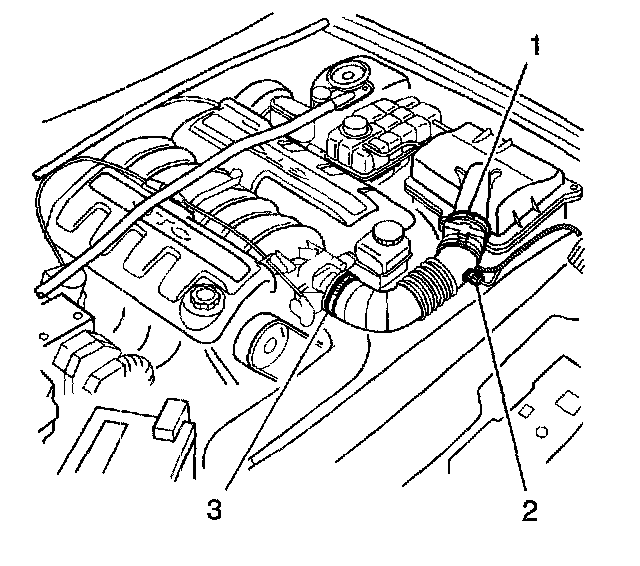 6. Loosen the hose clamps (1, 3) securing the intake duct.