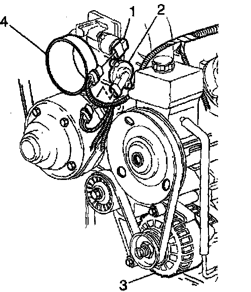 11. Disconnect the connector from the intake air control (IAC) motor (1).