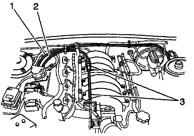 15. Connect the fuel injector connectors (3) to all the fuel injectors.