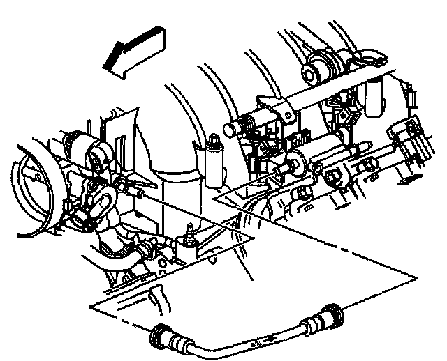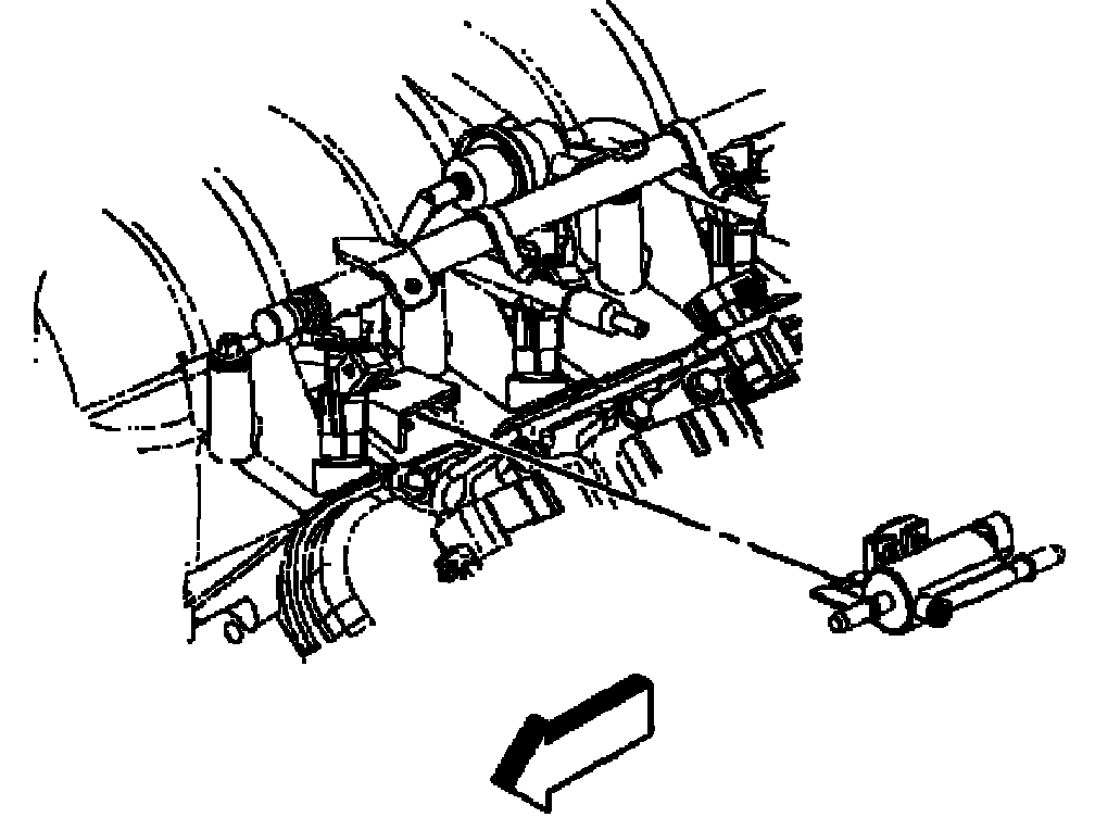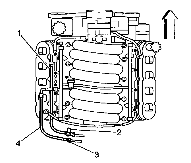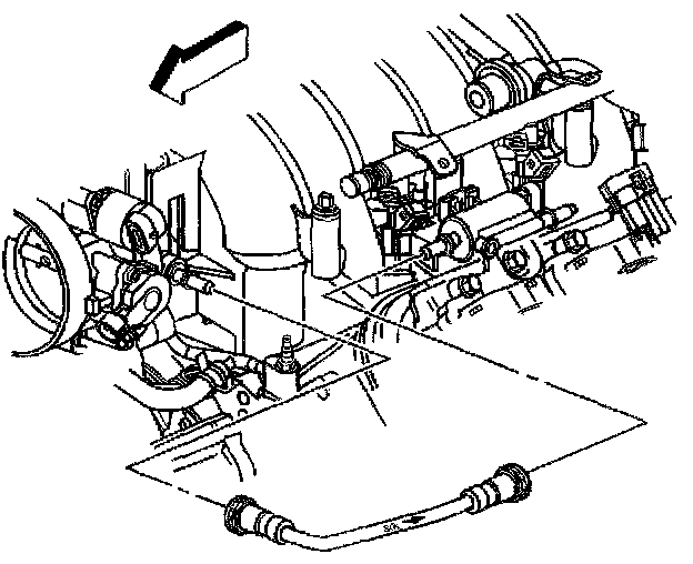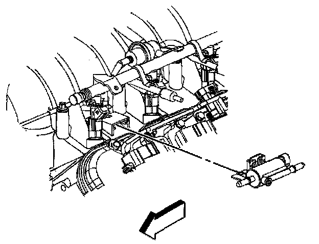 Caution: The fuel rail stop bracket must be installed onto the engine assembly. The stop bracket serves as a protective shield for the fuel rail in the event of a vehicle frontal crash. If the fuel rail stop bracket is not installed and the vehicle is involved in a frontal crash, fuel could be sprayed possibly causing a fire and personal injury from burns.