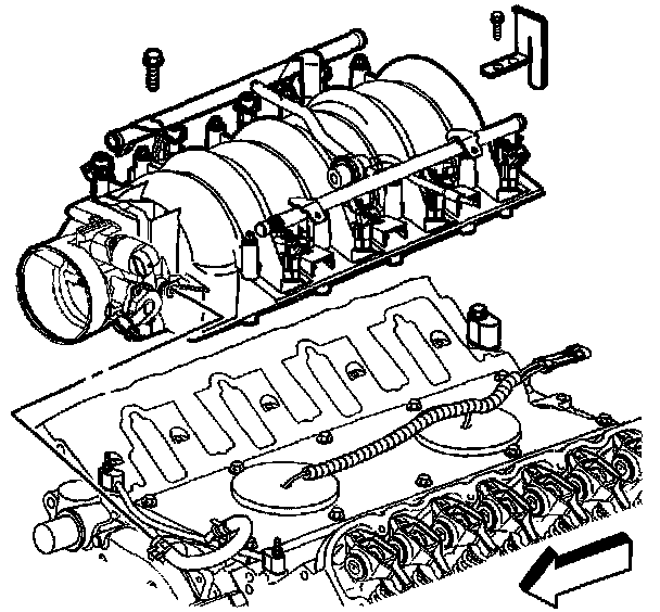 Important: The intake manifold, throttle body, fuel injection rail, and fuel injectors may be removed as an assembly. If not servicing the individual components, remove the manifold as a complete assembly.