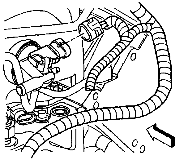 13. Open the retainer clip at the intake manifold and remove the cable (3) from the clip.