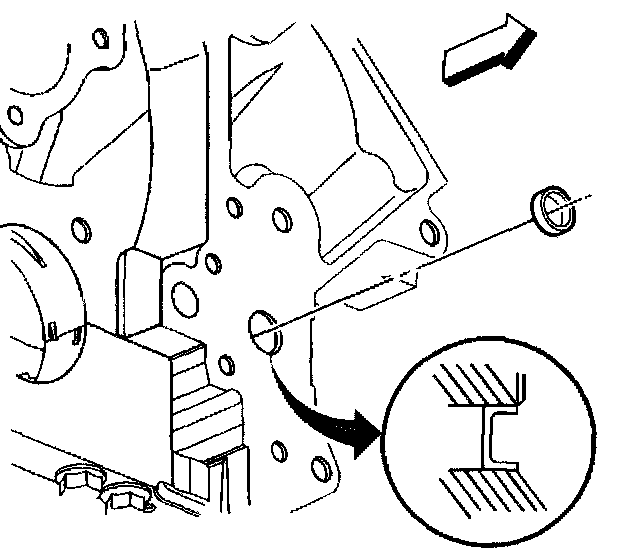 10. Inspect the O-ring seal of the rear oil gallery plug. If the O-ring seal is not cut or damaged the plug and O-ring seal may be used during assembly.