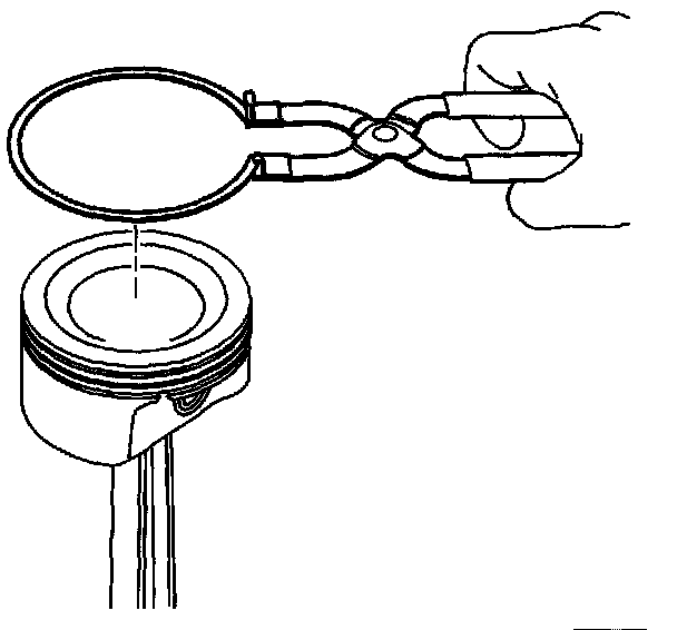 ^ Disassembly of the piston, press-fit design piston pin, and connecting rod may create scoring or damage to the piston pin and piston pin bore. If the piston, pin, and connecting rod have been disassembled, replace the components as an assembly.