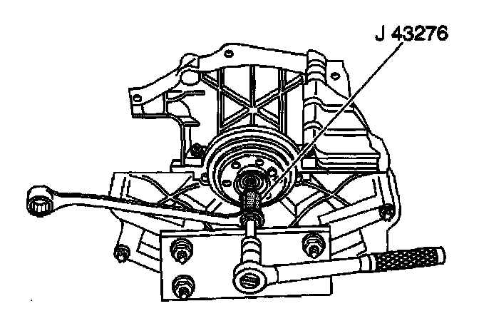 Notice: When using the J 43276 Clutch Pilot Bearing Remover, always secure the J 43276-1 Clutch Pilot Bearing Remover tool body using a wrench. Do not allow the J 43276-1 tool body to rotate. Failing to do so causes damage to the J 43276-1 tool body.