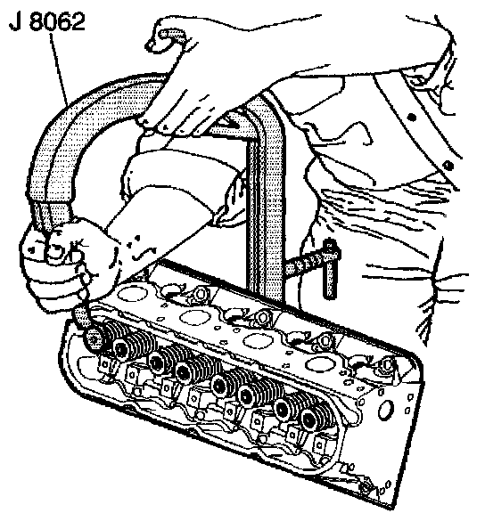 2. Use the J 8062 in order to compress the valve spring.