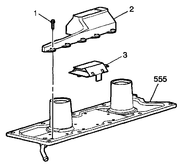 2. Remove the bolts (1), baffle cover (2), and baffle (3) from the valley cover (555).