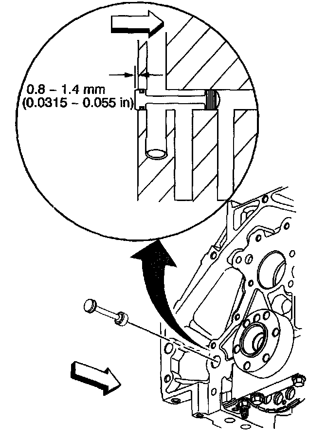 13. Install the block rear oil gallery plug into the oil gallery bore. A properly installed block plug will protrude 0.8-1.4 mm (0.0315-0.055 inch) beyond the rear face of the block.
