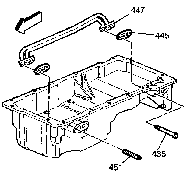 4. Install the oil transfer tube (447), gaskets (445), bolts (435) and studs (451).