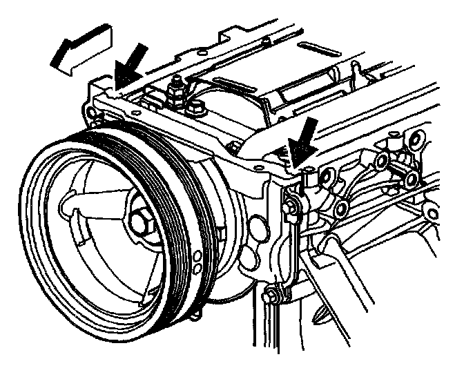 5. Apply a 5 mm (0.2 inch) bead of sealant GM P/N 12378190 or equivalent, 20 mm (0.8 inch) long to the engine block. Apply the sealant directly onto the tabs of the front cover gasket that protrude into the oil pan surface.